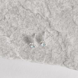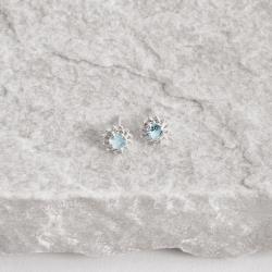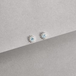 Brinco zircônia redonda azul claro com cravejado 7mm | Mya Prata