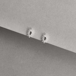 Brinco zircônia navete cristal com cravejado 9mm | Mya Prata