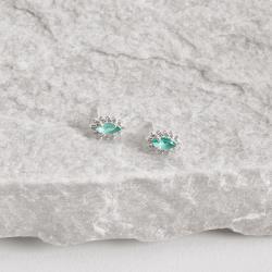 Brinco zircônia navete acqua com cravejado 9mm | Mya Prata