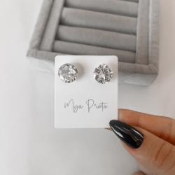Brinco zircônia redonda cristal 12mm | Mya Prata