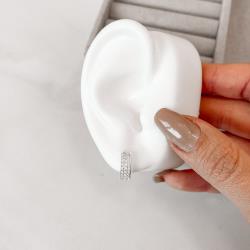 Argola click 13mm vazada cravejada | Mya Prata