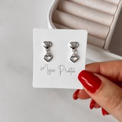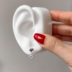 Brinco coração com pingente coração vazado 6mm | Mya Prata