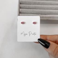 Brinco boca cravejada rosa 7mm | Mya Prata