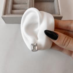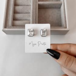 Brinco zircônia retangular caixa alta 12mm envelhecido | Mya Prata