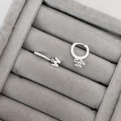 Argola click cravejada 14mm pingente letra W | Mya Prata