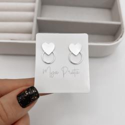 Brinco coração com círculo vazado 16mm | Mya Prata