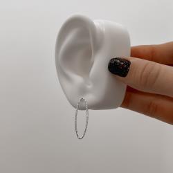 Brinco navete vazado riscado 29mm | Mya Prata