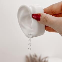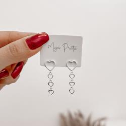 Brinco coração vazado 10mm pingente corações | Mya Prata