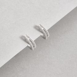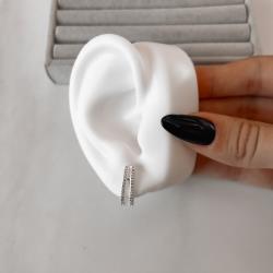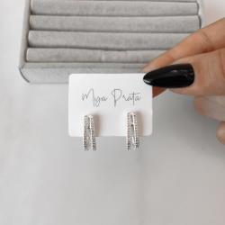 Argola oval 2 fios cravejados 18mm tarraxa | Mya Prata