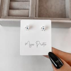 Brinco infantil flor detalhe zircônia azul 6mm tarraxa baby | Mya Prata