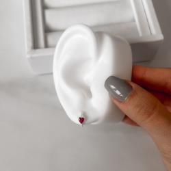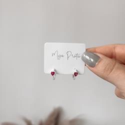 Argola click cravejada 11mm detalhe zircônia coração pink | Mya Prata