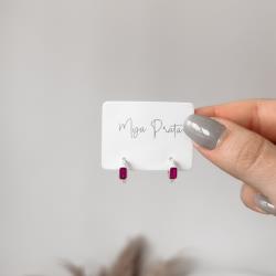 Argola click cravejada 11mm detalhe zircônia retangular pink | Mya Prata