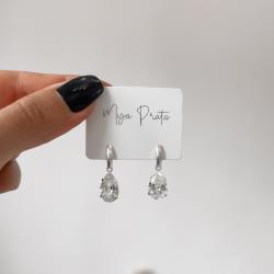 Brinco base com zircônia gota cristal 12mm | Mya Prata