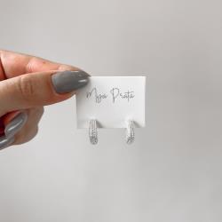 Argola click quadrada com cravejado 13mm | Mya Prata