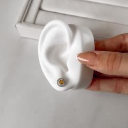 Brinco zircônia redonda amarela com cravejado 9mm | Mya Prata