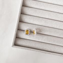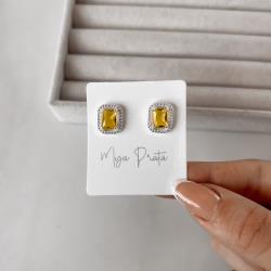 Brinco zircônia retangular amarela com cravejado 13mm | Mya Prata