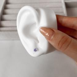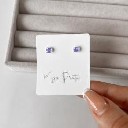 Brinco zircônia quadrada lilás 4mm | Mya Prata