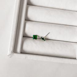 Brinco zircônia quadrada esmeralda 6mm | Mya Prata