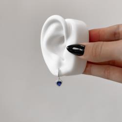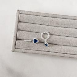 Argola click cravejada 11mm pingente zircônia coração azul | Mya Prata