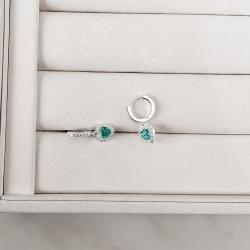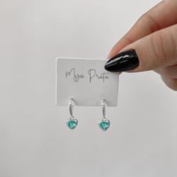 Argola click cravejada 11mm pingente zircônia coração acqua | Mya Prata