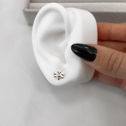 Brinco infantil abelha resina 9mm tarraxa comum | Mya Prata