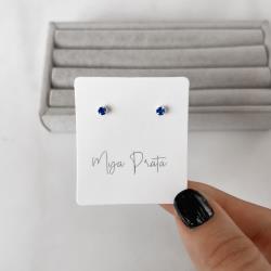 Brinco zircônia redonda azul bic 3mm | Mya Prata