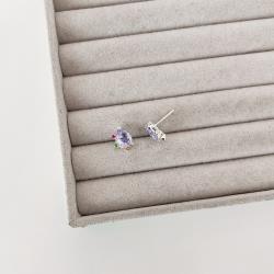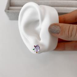 Brinco zircônia gota lilás com cravejado colorido 12mm | Mya Prata