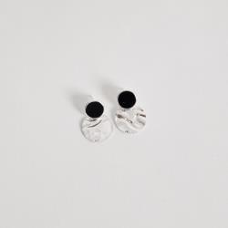 Brinco base círculo ônix resina com pingente círculo ondulado 15mm | Mya Prata
