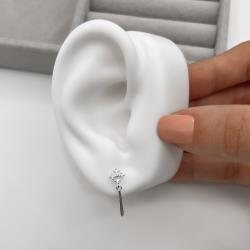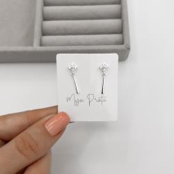 Brinco trevo cravejado 6mm pingente palito 14mm | Mya Prata