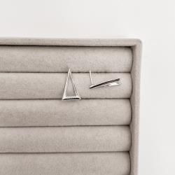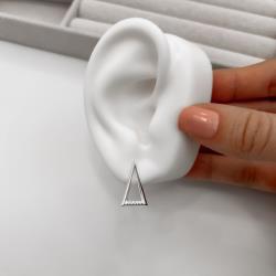 Brinco triângulo vazado detalhe cravejado 20mm | Mya Prata