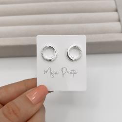 Brinco círculo vazado detalhe cravejado 14mm | Mya Prata