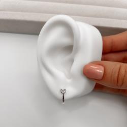 Brinco meia argola coração cravejado 15mm | Mya Prata