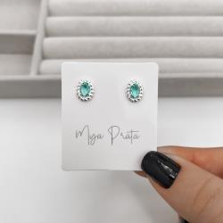 Brinco zircônia oval acqua detalhe torcido 10mm | Mya Prata