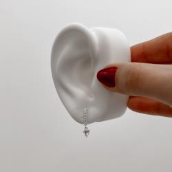 Brinco palito cravejado 11mm com pingente zircônia coração