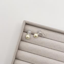 Brinco meia bola cravejada e pérola 17mm | Mya Prata
