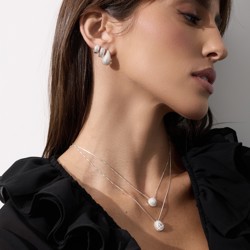 Argola click larga cravejada 11mm detalhe geométrico vazado | Mya Prata