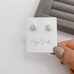 Brinco zircônia gota com cravejado 10mm | Mya Prata
