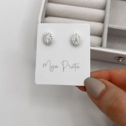 Brinco zircônia oval com cravejado 10mm | Mya Prata