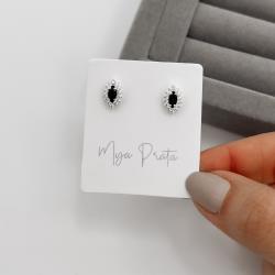 Brinco zircônia navete ônix com cravejado 10mm | Mya Prata