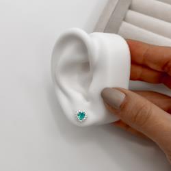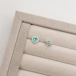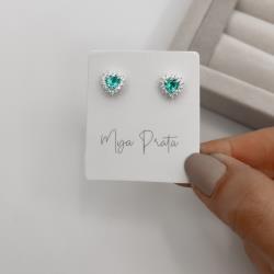 Brinco zircônia coração acqua com cravejado 9mm | Mya Prata