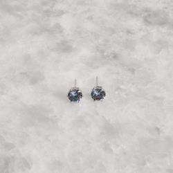 Brinco moissanite rainbow green 6.5mm ródio | Mya Prata