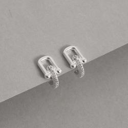 Brinco meia argola cravejada com elo 16mm tarraxa | Mya Prata
