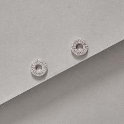 Descrição: Brinco círculo vazado com duplo cravejado 10mm fabricado(a) em prata