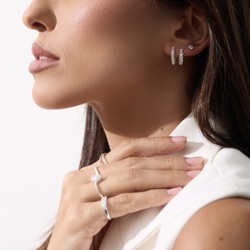 Descrição: Argola toda cravejada cristal 13mm trava fabricado(a) em prata