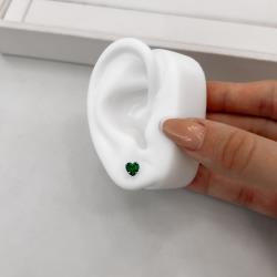 Brinco zircônia coração esmeralda 6mm | Mya Prata