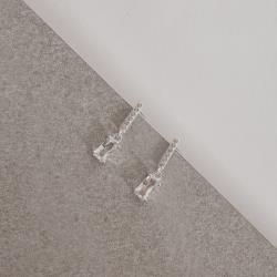 Descrição: Brinco palito cravejado 11mm com pingente zircônia retangular fabricado(a) em prata