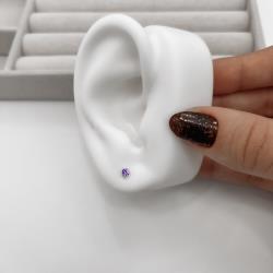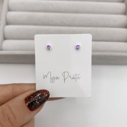 Brinco infantil zircônia 3mm lilás tarraxa baby - CI | Mya Prata