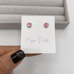 Brinco zircônia redonda embutida rosa 6mm | Mya Prata