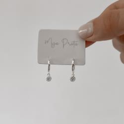 Argola click 11mm pingente zircônia redonda | Mya Prata