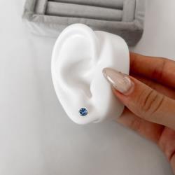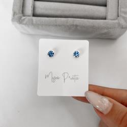 Brinco zircônia redonda embutida azul 6mm | Mya Prata